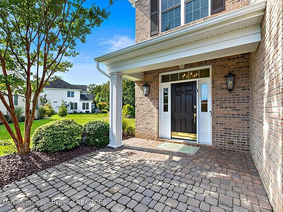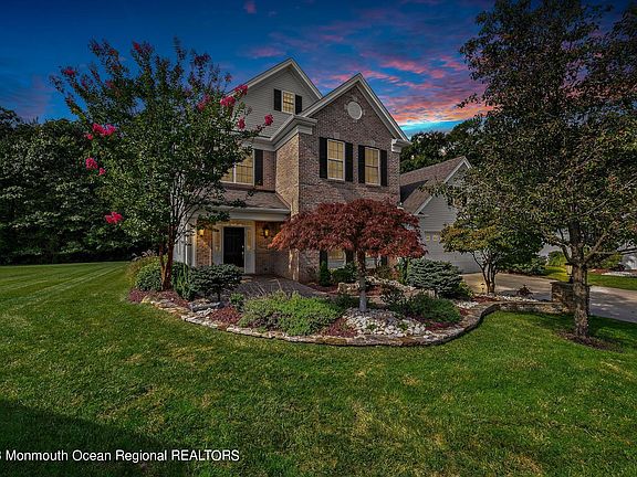Come home to this magnificent residence including a fabulous lifestyle in the premier Riviera at Freehold Toll Brothers community. Situated on a peaceful Cut de Sac and lovely wooded lot, this 4 bedroom 3 bath home has it all. Beginning with a dramatic 2 story light filled Family Room graced with a gas fireplace, crown moldings, and open floor plan including dining room with tray ceiling, gourmet kitchen with granite counters, stainless steel appliances and sunny breakfast area. This meticulously maintained home features ambient lighting throughout, a whole house 20K generator, walk-up stairs to a spacious Attic and newer hot water heater, kitchen appliances, washer and dryer. This home is a must see! Note: All room sizes are approximate.