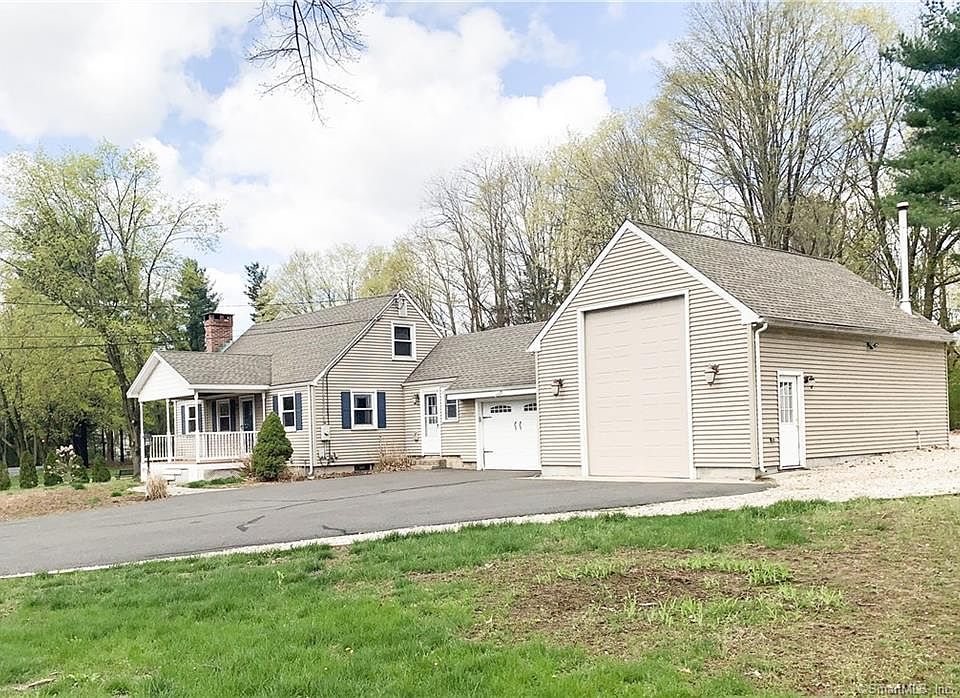 Charming and updated 3 bedroom and 3 bath Cape on private 0.48 acre lot. Spacious front porch to enjoy your morning coffee, you can entertain in the living room with a refinished fireplace and enjoy the updated kitchen which features granite counters, cherry cabinetry & breakfast bar. Dining room, full bath, & master suite with full bath and walk in closet finish off the main floor. Two nice size bedrooms and full bath round off the second level. There is additional finished space in the lower level, can be used as an office and/or playroom.This home features a 1 car garage. Additional oversize garage: 24 ft x 30 ft with 9 ft x 14 ft, back and front doors, security cameras , & heat. Perfect for storing an RV, boat, or projects. Solar panels installed to residence: owned, not leased. Hooked up to natural gas. Walk to schools, library & walking trails . Easy access to Avon , RT 6 and 84. Come make this your home!