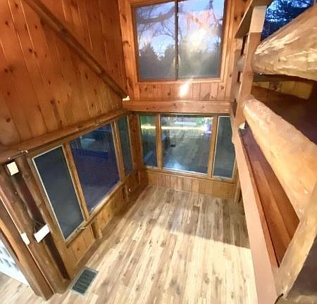 Single family LOG CABIN located in Lakeside Community ONE bedroom, loft, kitchen, Bathroom and Living room. Wood floors, vaulted ceilings, slate patio, large deck, winter views of the lake, Property goes between Kushaqua and Dogwood- Access to the home is through Dogwood lane entrance. Basement includes new washer and dryer with outside access.