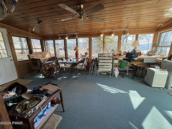 As you step inside, the rustic ambiance welcomes you, inviting you to add your own personal touch and make it truly yours. The living space is adorned with a wood burning stove, creating a cozy atmosphere to gather around during cooler evenings. Large windows frame captivating views of Lake Wallenpaupack, allowing natural light to illuminate the interior. The kitchen, with its vintage charm, provides the perfect space to prepare delicious meals. One of the unique features of this property is the boat garage, a coveted amenity for water enthusiasts. Safely store your boat or water toys, making impromptu lake excursions a seamless part of your lifestyle. Step outside onto the deck and breathe in the fresh mountain air as you take in the panoramic views of Lake Wallenpaupack. The deck is an idyllic spot for entertaining or simply unwinding after a day on the water. Embrace the allure of lakeside living in this charming cabin, where memories are made, and the tranquility of the lake is a constant companion. Don't miss the chance to own this piece of paradise--contact us today to schedule a showing and infuse this cabin with your own love and memories.