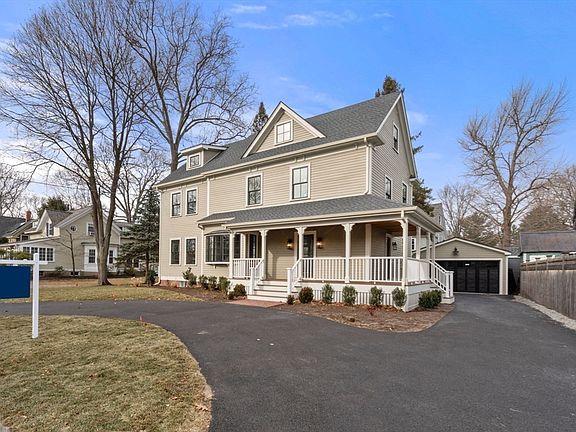 Nestled in a sought-after neighborhood, this stunningly reimagined home combines timeless charm and modern comfort, just a short walk to downtown. The inviting foyer welcomes you from a wrap-around porch into an open yet intimate layout connecting the kitchen, dining, and family rooms. A mudroom with marble checkered flooring and a walk-in pantry with a beverage fridge add practical luxury. The second floor offers three spacious bedrooms, including a serene primary suite with a walk-in closet and luxurious en-suite, plus a second bathroom and adjacent laundry room. The third floor features a private retreat with a bedroom, full bath, and flexible space for an office or sitting area. The lower level provides options for a playroom, exercise room, or office. Outdoor living shines with a bluestone patio accessed from the family room, perfect for entertaining. A detached two-car garage completes this exceptional property.