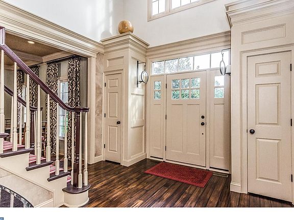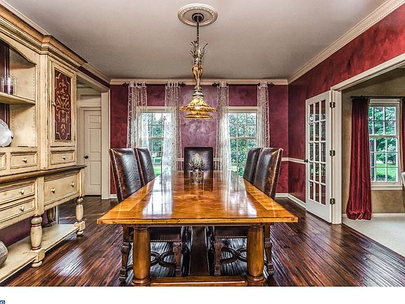 Just entering the Willow Creek enclave is a pleasure, driving up the winding road past Blue Moon Acres Organic Farm and turning down Belgian block-lined Lake Baldwin Drive that leads to 3, nestled on a deep, two-acre lot that backs to preserved land. A brick paver walkway from the driveway culminates at the half-round steps outside the front door, which is charmingly reminiscent of the arts and crafts era. Inside, designer details are apparent at every turn, beginning with the beautifully detailed paint treatment in the two-story foyer, lending the light-filled room the appearance of old world stone. The beautiful details continue throughout the 1st fl, including chair rail and crown molding in the dining room, which is to the left of the foyer, and separated from the family room just beyond by French doors. To the right of the foyer, the formal living room is a private retreat with a wall of custom built-in cabinetry, a coffered ceiling with fabric accents and recessed lighting, and a hardwood floor with a delightfully unexpected, hand stained diamond pattern. The expansive family room extends from the front of the house to the back, and accesses the paver patio through two sets of French doors. Centered along one wall, a rustic stone fireplace provides a focal point for the room, offset by quarter-round-topped windows on either side. A cathedral ceiling adds drama, while a half-wall open to the kitchen creates the perfect entertaining space. A bay window with built-in seating highlights the breakfast area, while a pentagonal, granite-topped island with a cooktop, storage and counter seating takes center stage. High-end, stainless steel appliances include an LG refrigerator, Jenn-Air double wall oven and Jenn-Air dishwasher. A wainscoted hallway leads from the kitchen to the laundry room, an office with a sunburst window overlooking the backyard and the wooded area beyond, and a door to the three-car garage. A powder room with a pedestal sink completes the first floor. Upstairs, the master bedroom suite has a walk-in closet and a spacious master bath with a tub, separate shower and dual-sink vanity. Three additional bedrooms share a hall bath. The basement is finished to the same exacting standards as the main living area and skillfully integrates a beautiful bar area, media area, game area and storage area into one well-planned space. Highly acclaimed Hopewell Valley Regional Schools add to the appeal of this sophisticated home.
