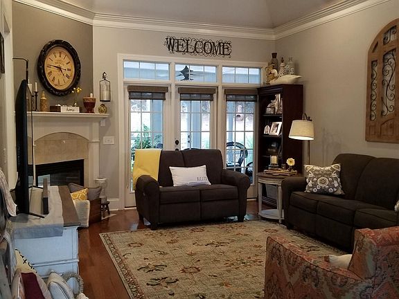 Work from home with a private a view of the outdoors. Enclosed all season porch with a gas grill with vents to outside. You can view from the kitchens 5 burner gas cooktop range w granite counters, eat-in kitchens bay windows and glass doors in great room and 3rd main floor bedroom with glass doors. Delicately landscape with no fuss perennial flower garden. Sit outside on new concrete stamped private patio or enjoy night landscape lighting. The pride of ownership shines through the warm glow of hardwood Floors in foyer/din/kit/great rm. Spacious great rm glass doors to all season porch; Chef's delight kit double ovens, 42" cherry cabinets w/ 13 draws; 2 sided fireplace between great rm & breakfast/keeping room; private split bedroom plan; luxurious master suite w/ large bath and closet; BR#2 used as office w/ built-ins and coffered ceiling; BR#3 w/ glass doors porch; FROG suite can be BR#4 w/ large closet and full bath; new shingles 2014, All downstairs ceilings at least 10'; 11' ceilings MBR; 14' in great room; 9'ceilings upstairs; HOA fees include front yard maintenance to free up your time to enjoy Lake Carolina amenities. All kitchen appliances & TV above the fireplace, All window treatments and rods, Water fountain, Gas grill to convey at no additional cost to buyer.