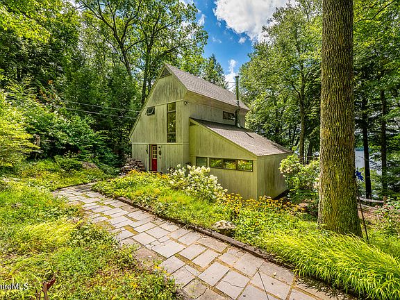 LAKE GARFIELD WATERFRONT three bedroom two bath four-season contemporary home with southwest-facing views over the main lake to the sunset beyond. A boardwalk leads from the house down to the waterfront deck and dock where one can enjoy all day sunshine and deep water swimming. The open kitchen and living room lead to a large deck facing the water. Two guest bedrooms a full bath and a three-season den, along with a mudroom foyer are on the first floor, while the primary bedroom and en-suite bath occupy the second floor. The primary bedroom has glass sliding doors to a private balcony with water views. The walk-out basement is terrific storage for lake toys and equipment. This is an excellent location with very desirable waterfront on the most coveted lake in Berkshire County.