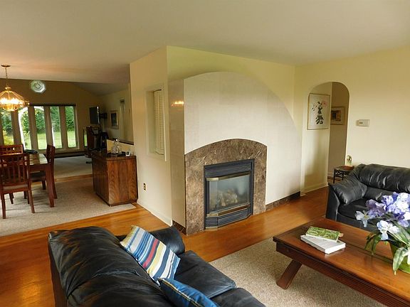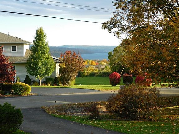 Drastic price reduction as seller is relocating in December - a great 'buy' now before the Spring market rush! Located in Lansing's Lakeview Drive neighborhood, just a few minutes up the hill from Lansing Blue Ribbon Schools! This charming ranch offers WOW lake views with all main level living! Open floor plan with kitchen/dining/great room. Hardwood floors, marble LP gas fireplace, tiled full bath. Bright kitchen with oversized skylight, cherry cabinets, pantry spaces galore! Vaulted ceilings in great room addition with wall of windows overlooking stone patio. Fenced yard great for pets! A detached 2-car garage - don't miss the bonus workshop/storage space. Paved driveway a plus too. Full basement with laundry and potential for craft/rec room. Enjoy entertaining on the wrap-around deck. New in past 5 years: septic (2011), interior painting, clothes dryer, more. Easy access to TCAT busline #36 with ~6+ stops on Cornell campus. This is your place to downsize!