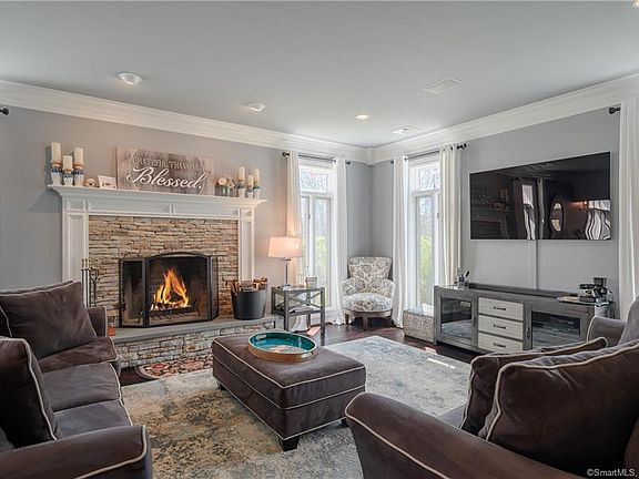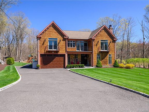 Absolutely stunning custom Colonial with 3,500 square feet of high-end finishes. High ceilings and extensive moldings throughout, including coffered ceilings in the dining room and extra wide crown moldings on both levels. The living room showcases a stone wood-burning fireplace and the dining room walks out to the beautiful back patio. Spectacular kitchen with center island, marble countertops, custom cabinetry and JennAir professional stainless appliances, including wine chiller and pot filler. This level also includes a home office/den, full bathroom, laundry room and access to the spacious 2 car garage with built-in mud room storage. The upper level features a dramatic center great room plus four amply sized bedrooms and three full bathrooms. The master suite features a huge walk-in closet, cozy fireplace and large bathroom with walk-in shower and dual vanities. The back is an entertainers dream, graced by a large stone patio with built-in fire pit, a lush, manicured lawn overlooking beautiful woods and Pond Brook. The exterior also features Nantucket style shake siding with wrought iron detailing, a peaceful front porch and is meticulously landscaped with a sprinkler system. Theres even a site for a future in-ground pool. Tucked away, yet just a few minutes to exits 8 or 9 off I-84 and close to Target, numerous restaurants and shops. Under 90 mins to NYC, an ideal year round or weekend getaway. Wired for surround sound throughout. Absolutely nothing left to do!