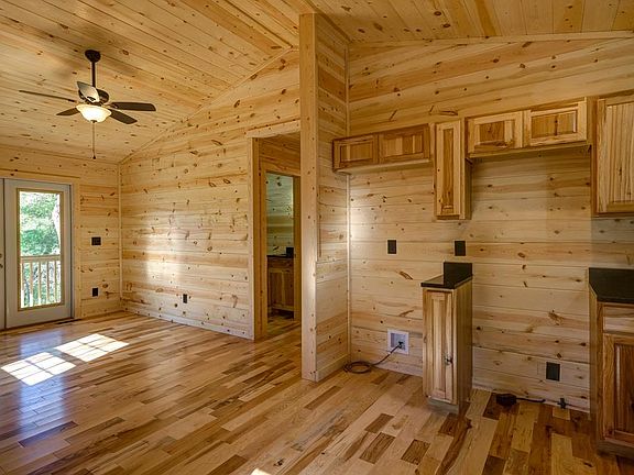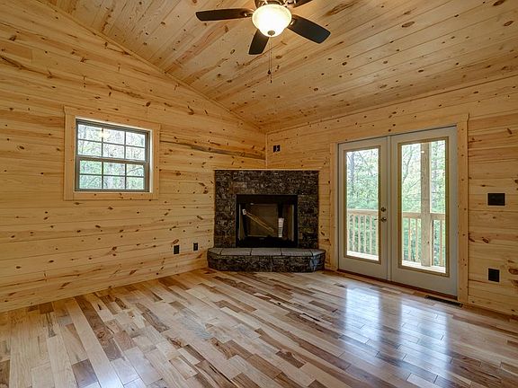 BRAND NEW CABIN BEING BUILT! Gorgeous rough cut wood siding, metal roof, and full length covered front porch to rock away the days. Large crawl space for storage and access. Step inside from your covered entry porch to an all wood, open floor plan with vaulted ceiling, lots of windows for natural light, stone fireplace, kitchen with beautiful hickory cabinets and granite countertops, hardwood floors, and central heating and air. Peaceful wooded lot situated in one of Murphy's best locations. Totally turn-key with everything except you and your choice of appliances. Contact us today for more information and to come see it in person!