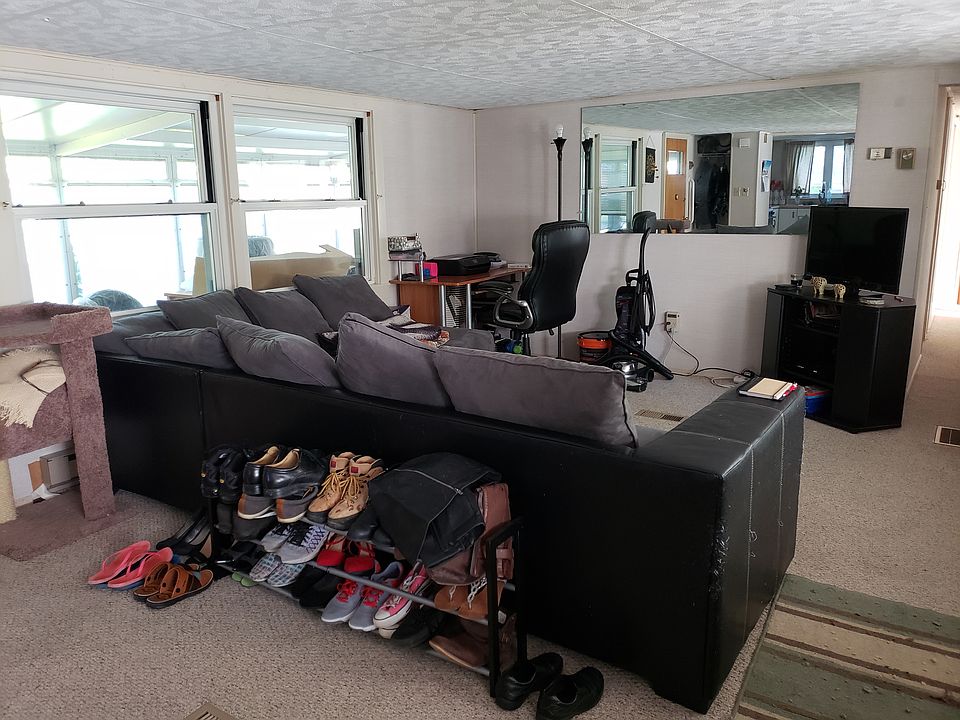 Mobile home with 2 bedrooms, 1 bath, and added enclosed porches to both sides going the entire length of the original trailer. Park plows the roads, removes garbage twice a week, and annually trims any bushes you have in your lot. Has central AC, forced heat, gas stove, central vacuum system, and dishwasher. Park fee is around 450 dollars. Water & sewer is paid by Jensons. Sale has to be approved by Jensons community.