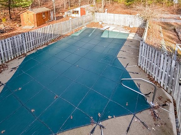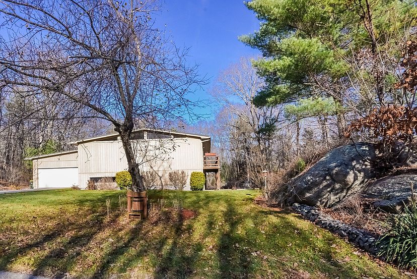 Reduced Reduced...... A unique Contemporary with the look and feel of up North right here in Smithfield, RI. This home offers lots of privacy, floor to ceiling sliders and windows that bring you out to a large wrap around deck. Fireplace is double sided in family room/dining area, open floor plan, cathedral ceilings and a recently refurbished bathroom with corian counter top and tiled floor. Finished Lower level is great for entertaining, including a full bar, fireplace and walk out sliders to outside in-ground pool and shed. Solar heated hot water helps save on cost of hot water bill. heated two car attached garage with remote