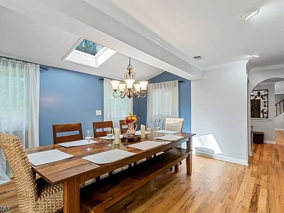 Welcome to this retreat in the heart of Lake Hopatcong, donning a gorgeous front porch, a tremendous new custom deck, grand arbor trellises, enormous patio and beautiful back yard for entertaining. The interior boasts of hardwood floors, crown molding, a large kitchen w/ a large breakfast bar and living room with custom slate flooring and a handsome wood burning stove. The first floor makes a perfect work from home environment w/ BONUS 5TH guest bedroom/office complete w/3rd BTH. Upstairs is complete with vaulted ceilings, Master BDRM w/ skylights, 2 walk-in his and her closets, and a large on-suite BTH w/ jetted jacuzzi tub, double sinks, and ceramic tile. 4th BDRM has new private balcony. House offers plenty of privacy perched at the end of cul-de-sac with a tall surrounding tree line. Plenty of storage with closets and built-ins throughout the home. Basement conveniently located off kitchen area for storage and access to utilities as well. Seller is offering some furnishings including dining room, outside furniture and motivated for a quick closing.