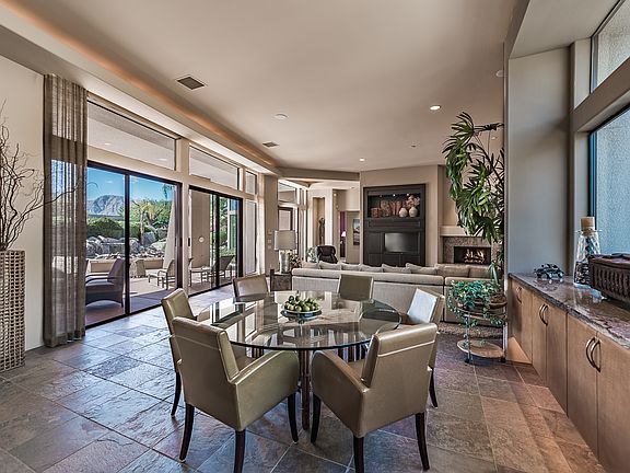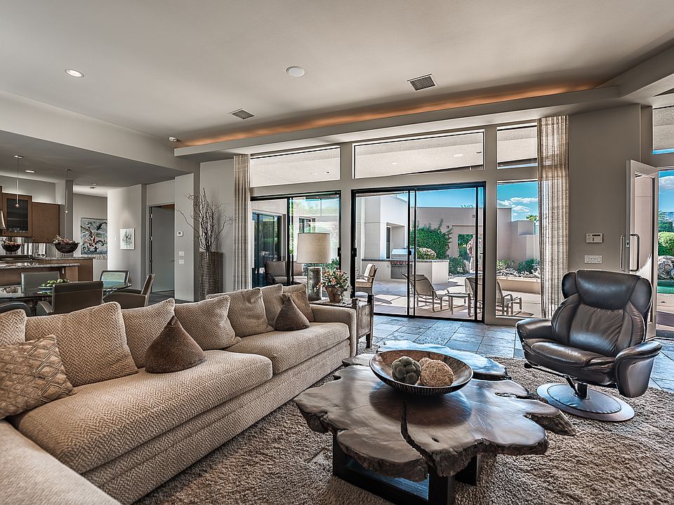 High ceilings, open floor plan and an ultra-private south-facing yard with custom-designed pool and spa, modern gas firepit, built-in BBQ and mountain views! Welcome to luxury living at Sterling Estates that is within minutes to multiple golf courses, restaurants and retailers. Large great room with floor to ceiling glass windows and multiple sliding glass doors that create true indoor/outdoor living. Modern kitchen with detached island opens to the dining area and spacious living room with fireplace. Master Suite with retreat includes a fireplace, access to the pool/spa, and a private bath with split vanities, walk-in shower, separate tub and walk-in closet. On the other side of the house are three additional bedrooms. Junior Suite Two offers views, direct access to the pool/spa and a private bath. Junior Ensuite Three also offers a private bath. Bedroom Four, currently used as an office, opens to the pool/spa. Powder bath, laundry room and attached three car garage.