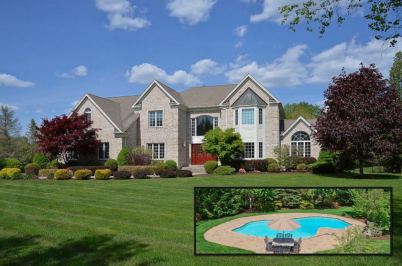 Prestigious Center Hall Colonial set on 1.88 Acres of Property in Mendham Lake Estates! You are welcomed to this Home at the crown of cul-de-sac location. Gourmet Kitchen has center island, corian counters, tile backsplash, hardwood flooring and a separate eating area with French doors leading out to the Deck and pool area. There is a Formal Living Room and Formal Dining Room with vaulted ceiling, gas fireplace and lovely windows overlooking the grounds and backyard oasis.A bright open Library with Fireplace, an Office/Den and a powder room complete the main level. Master Suit, a two room Princess Suite , and two additional bedrooms are located on the second floor. Enjoy your own backyard oasis with an expansive outdoor tiered deck and a beautiful In-Ground Pool in the warmer months. Comes w/HomeWarranty.