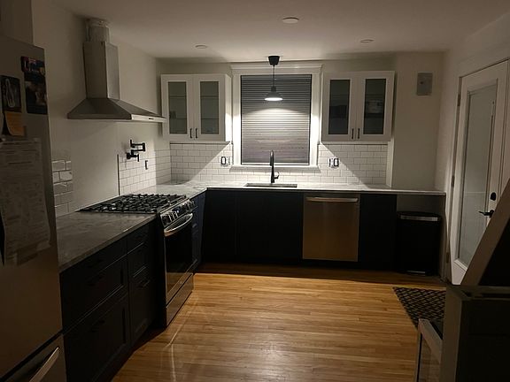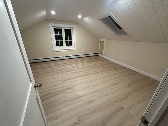Located on Malden/Medford line with a 2 minute walk to the Fells and close to the Oak Grove train station. Large newly renovated 2nd floor bedroom with newly installed electric skylight and a double crank open window. The room is roughly 15'x13' with a mini split for heat and a/c as well as baseboard heat. New kitchen and the bathroom are on the 1st floor. Bathroom is shared with 1 person. 2 living rooms are free to use on the 1st floor. Large front porch with outdoor furniture. On a quiet dead end street. Off-street parking available but parking passed not needed for street parking. Room can be rented furnished or empty. Smoking allowed on front porch. Animals allowed depending on size and small additional fee. All utilities included in rent. Minimum 3 month lease but preferably 6-12 months.