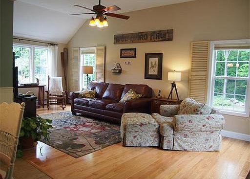 Private country setting but close to major routes is the location for this bright Colonial. Well maintained home offering a formal living and dining room, large eat-in ceramic tiled kitchen with island, family room and four season sun room overlooking a pretty back yard with perennial gardens and mature plantings; first floor laundry with bath. Large master bedroom with walk-in closet and plumbed for future master bath. Two additional bedrooms and full bath completes the floor plan. Propane high efficiency furnace was installed in 2013. A must see!