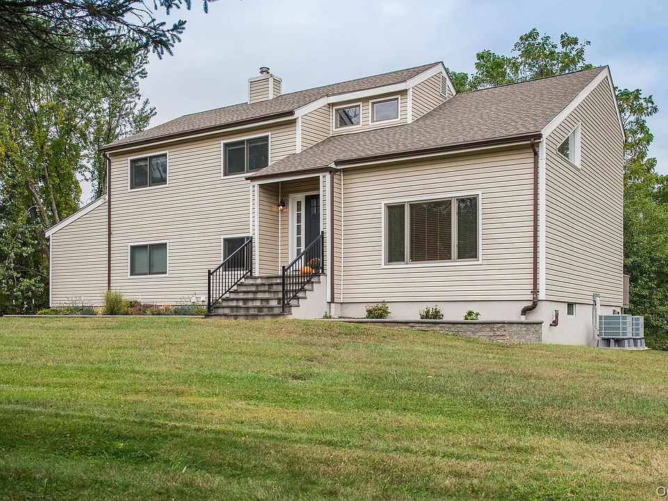 You will love this beautiful contemporary home on a quiet cul-de-sac in the small community of Patterson. As you enter the front door, you are greeted by the openness of the floor plan, the warmth of the vaulted wood ceiling, and the welcoming natural light. Downstairs boasts a living room, dining room, large kitchen with eating area, family room with fireplace, and a half bath. Upstairs you will find the primary suite, two more bedrooms, a hall bath, an adorable home office, and a separated space for exercise, second office, or other use. The basement is unfinished and contains the laundry area. This home has been lovingly cared for with several recent updates. New heat pumps were just installed, along with a new water softener. The roof is 4 years old, and new siding was added 3 years ago. Expansive level yard space and a park across the street for recreation. Ready for move-in and enjoyment. Nearby shopping and less than 5 minutes to Thunder Ridge Ski Area. Less than a mile from the Patterson train station. Easy access to I-84 and Route 22. Don't miss this one.