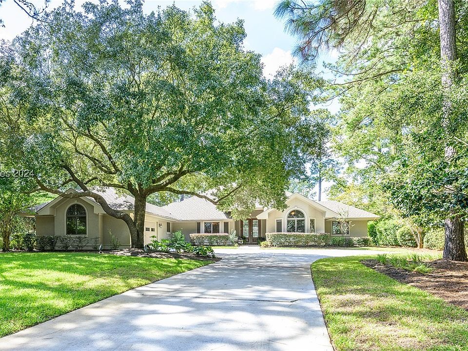 Absolutely stunning! This spacious one-level home will take your breath away. Features include natural wood and travertine floors, vaulted ceiling, spectacular wood-burning fireplace, wonderfully crafted built-ins, luxurious master suite, whole-house audio system. 2+car garage w/epoxy floor, endless storage, and walls of windows and sliding glass doors that bring the outside in. Sunroom opens to inviting pool and large sundeck. Lush landscaping provides complete privacy while also offering golf course views. Kitchen has magnificent granite island, custom cabinetry, SS appliances, plus breakfast area. Private well supplies irrigation system.