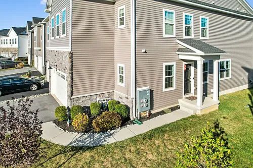 Available for rent from February 1st. Welcome to your stunning end-unit carriage home in Lochiel Farms! Built in 2021, this property blends the charm of new construction with immediate move-in readiness. With over 2,660 square feet, this spacious home features 3 bedrooms, 2.5 bathrooms, a two-car garage, and is situated on a premium lot. Enjoy easy access to the Chester Valley Trail and East Whiteland Park, perfect for outdoor recreation. Upon entry, a bright foyer leads down the hall to the heart of the home: a gourmet kitchen. This chef's dream is highlighted by an oversized quartz island, stainless cooktop with a sleek range hood, and quartz countertops throughout. Designed for both style and function, the kitchen includes soft-close drawers, ample cabinetry, a built-in oven and microwave, and a walk-in pantry. Adjacent to the kitchen, the open gathering area offers a cozy sitting area, dining space, and living room with a gas fireplace and remote control. Sliding glass doors open to a Trex deck, ideal for outdoor dining and relaxation. The second floor features a versatile loft, perfect as an additional sitting area or home office. The expansive primary suite includes two walk-in closets, a private sitting area, and an elegant bathroom with double sinks, a large shower stall, and a separate commode. Two guest bedrooms, each with walk-in closets, share a full bath, while a convenient laundry room completes the second floor. The expansive unfinished basement, with high ceilings and an egress window, provides ample storage and is ready for your customization. Additional home features include recessed lighting, ceiling fans, Ring technology, keyless entry, and a Ruckus gateway for seamless wireless connectivity.