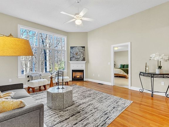 Experience exceptional first-floor living in the Gardens of Wilbraham, the area’s premier 55+ condo community. Presenting the Cambridge Unit, offering over 1,700 square ft of living space and a two-car garage, with a serene backdrop of trees. The living room features floor-to-ceiling windows, hardwood floors, and a corner gas fireplace. The spacious eat-in kitchen includes a breakfast bar, complemented by a separate dining room with hardwood floors, ideal for gatherings. Two generous primary en suites boast full bathrooms with ceramic tiles and walk-in closets. A sunroom, surrounded by windows, offers tranquility. A laundry room with a half bath completes the first floor. The expansive walk-out basement provides potential for a recreational room, leading to a stone patio for outdoor seating. Enjoy the resort-style clubhouse featuring an outdoor heated pool, fitness center, library, media room, and more. Embrace a maintenance-free lifestyle today.