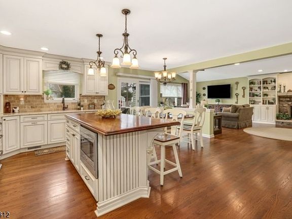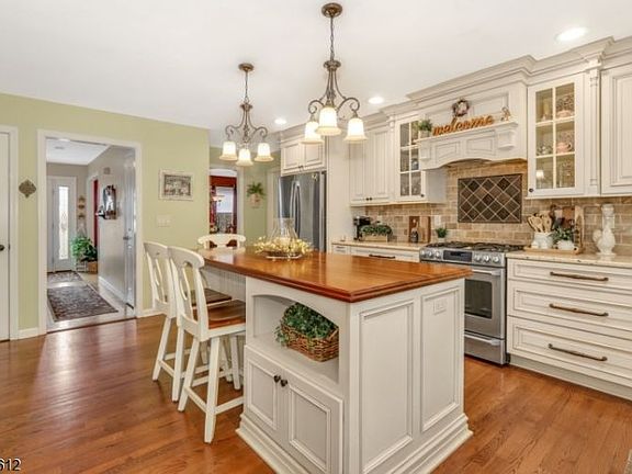 Gorgeous Colonial home featuring spacious rooms and upscale appointments. Remodeled generous sized kitchen addition with custom quality cabinets, beautiful moldings, double sink with no touch faucet, granite countertops, stainless steel appliances, pantry and an oversized 7' Marine Finish Wood Island for casual dining. Open floor plan to the great room with a soaring ceiling, an abundance of windows allowing natural lighting along with recessed lighting and a wood burning fireplace surrounded with custom built. Living Room and Formal Dining Room with gleaming hardwood floors. First floor laundry room and mud room entry for convenience. The Primary en-suite features two double closets. Bath complete with stall shower and vanity with granite countertop. Three more bedrooms with double closets. Wood flooring under plush carpeting in all upstairs bedrooms as well as quality ceiling fans. Trek deck overlooking beautiful fenced in property surrounded by lush landscaping and new wood shed. Two car garage and workshop with direct access to basement. New HVAC an CAC and newer HWH. Last house on a dead end street. Don't miss this spacious and quality home!