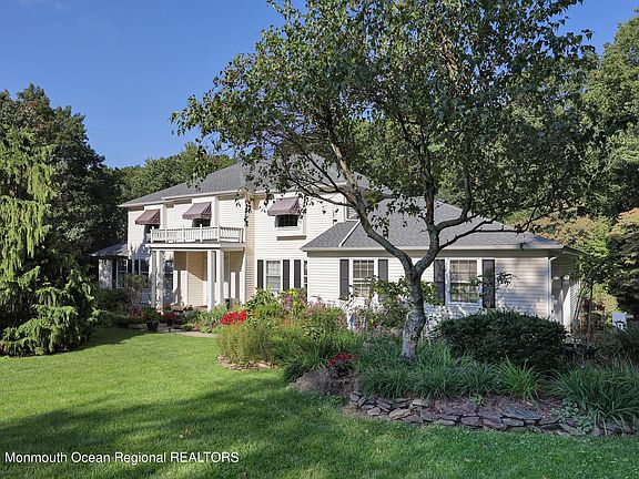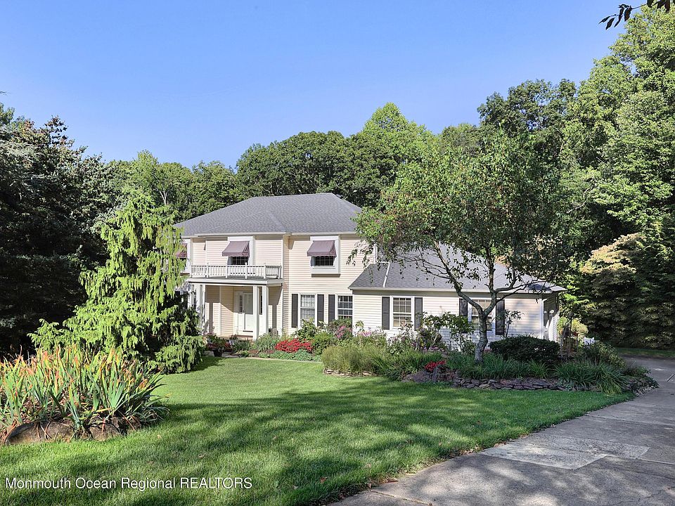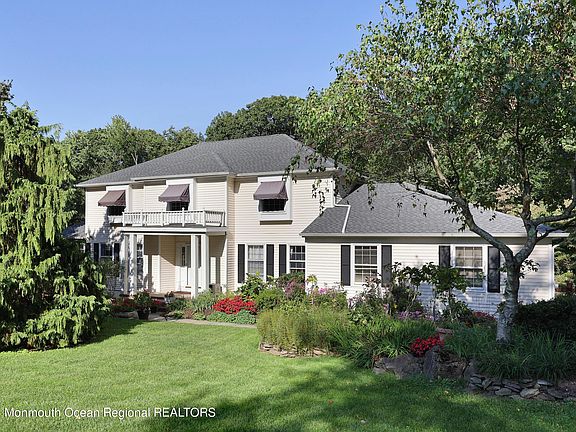 This must see 5 bedroom, 3 bath house sits on 2.68 tree-lined acres located at the end of a cul-de-sac. The main floor features hardwood floors, dining room, living room with french doors, family room, large eat in kitchen with sliding doors to expansive deck great for entertaining, laundry room, a bedroom and full bath. Upstairs you will find 4 bedrooms, large master en-suite and walk in closet. The large unfinished basement offers endless possibilities with 12' ceilings and direct outdoor access. House has new roof and tons of storage. Close to NYC transportation, ferry, train, major highways, Beacon Hill Country Club, Sandy Hook, Red Bank, restaurants, shopping and more!