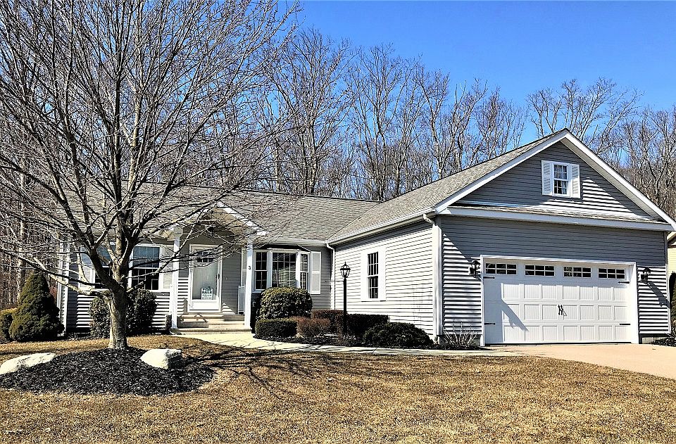 RESALE HOME!! Hillcrest is for People 55+ This is a Pristine, Turnkey 2006 Home featuring Oak Floored Dining area and Tiled Kitchen. Our Popular "Thames" model with Split Bedrooms ? a Master Suite on one side of the home and a Guest bedroom/Den/Office on the other side. Great Open Central Living Space segues to our Signature 4- Season Sunroom. This home borders the desired woods for extra privacy. The Finished 2-Car Garage, Full Basement and Attic provides plenty of storage and hobby space. Hillcrest is for People 55+