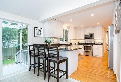 Come see this picture-perfect, sun-filled Cape conveniently located within walking distance to Medfield's town center and several of its top rated schools. This home has many upgrades, including hardwood floors throughout, an updated kitchen and bathrooms. The renovated white kitchen has newer granite counter tops and new stainless appliances. Both full bathrooms have been recently renovated with a clean and classic look. The living and dining room are spacious with hardwood flooring. The four bedrooms, likewise, have hardwood flooring. The recently finished basement would make a perfect office, family room, work out room, and/or play room. The attached garage enters into a updated mudroom space with ample storage. The home also features a spacious, level lot with a deck and pergola and a slate patio. The backyard is fenced in. This is a fantastic home in desirable and quiet neighborhood. It's a quick walk to a playground, the town center, a grocery store, cute shops and restaurants.