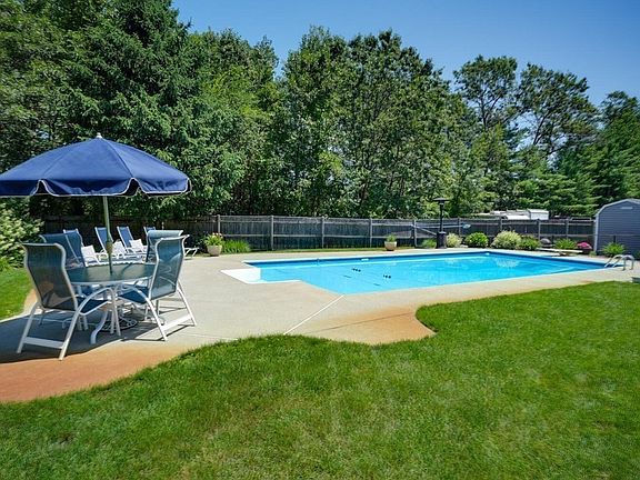 Offer deadline Tuesday July 18 at 12:00pm, seller reserves the right to accept an offer prior to deadline. Beautiful, landscaped grounds, inground pool, fenced in yard and two-tier composite deck with a screened porch, includes deeded access to Lake Boon. Custom features include expansive open kitchen with sapphire-blue granite countertops, custom maple cabinets, stainless steel appliances, double wall oven, and a wet bar. The elegant dining room has crown molding and wainscoting. The family room features a gas fireplace and custom mahogany built-ins. Large living room filled with natural light. Upstairs, the main bedroom is a sanctuary with a gas fireplace, custom walk-in closet, and a luxurious main bath with a spacious tiled shower, double vanity with granite countertops, custom cabinets, and an oversized jetted air tub. There are three additional bedrooms with two full baths, laundry room and a dedicated home office. Oversized garage includes 240 volt charging capacity for EVs.