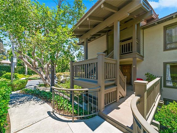 Enjoy treetop or pool views from this beautifully upgraded home w/tranquil interior location. Open floorplan w/kitchen & dining area overlooking main living room, creates the perfect space for everyday living or entertaining. Romantic, stacked stone fireplace is the centerpiece of the living room. Walls of windows, recessed lighting & bamboo flooring add a warm ambiance to the space. Slider opens to balcony off the living area, offering the perfect place to relax & unwind. Highly sought-after barn door feature adds dramatic accent to the living room & provides privacy for the 3rd bedroom, which could also be a home office/den. Remodeled kitchen features shaker cabinetry w/open shelf accents, farm sink & mobile island. Stone & wood surfaces & custom tile on both the backsplash & ceiling are just a few of the unique design features. Enjoy al fresco dining on the balcony off the kitchen. Spacious master suite has private balcony overlooking pool & lush greenery. Stunning master bath features dual vanity w/vessel sinks & stone surfaces against a tile wall backdrop. Spa-like shower has porcelain tile surround & frameless shower door. Newly designed his & hers closets. Remodeled hall bath has updated vanity, porcelain tile floors & new fixtures. Bamboo flooring & new carpet in both bedrooms creates comfortable living. With all living on one level, this home is perfect for first-time buyers or downsizing. Nearby two car garage has full size driveway. Close to UCI & University High!