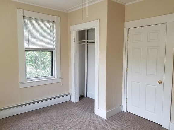 Heat, hot water and electricity is included in this 1 bedroom unit located on 2nd floor. Eat in kitchen. 14 unit building with security door, security cameras, and off street parking. Walk to everything: Commuter Rail station, bank, post office, stores, restaurants, Dunkin, etc. No upstairs neighbors in this unit. Full bathroom with shower. Quiet location in building at the end of the hall.