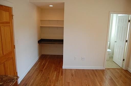 HEAT INCLUDED at this UPDATED 1 Bedroom apartment in downtown Shirley. Bright Hardwood flooring greet you. High 8' ceilings complete with recessed lighting. Walk to Commuter Rail, bank, post office, grocery. Windows updated and walls insulated. Deep closet in Master Bedroom, as well as another closet containing your personal Washer and Dryer combo unit. Bathroom has a full tub and tiled floors. This is a small 1 bedroom unit that combines the Kitchen and Family Room into one space. It means your couch, table and TV watching area is in the same room as the kitchen cabinets. We do have other units that have separate Kitchen areas, but this one is not like that! Kitchen complete with microwave, electric stove, and refrigerator, as well as plenty of cabinets. Check out the special area built into the Kitchen/Family Room that has shelves and a desk area. Small 14 unit apartment building with security door. Off street parking. No pets or smokers please.