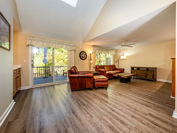 Privacy abounds in this move-in ready Nantucket style condo at Southport! Experience the ease and flexibility of this popular floor plan featuring a skylit main level with natural light throughout. The eat-in kitchen includes stainless steel appliances and plenty of storage. Enjoy the tranquil wooded view from the deck, and from every window. The first floor bedroom suite features a private full bath and spacious walk-in closet. Down the hall is a laundry closet, and a half bath for guests. The open, skylit staircase leads to a roomy loft area, an impressive bonus walk-in closet, and a private second floor bedroom suite. The full unfinished lower level has abundant room for storage. Added bonus: brand new high efficiency water heater! Enjoy the Southport lifestyle this extraordinary 55+ active community has to offer including a 9-hole golf course, indoor & outdoor pools, fitness center, library, bocce, shuffleboard, tennis, daily activities, and so much more!