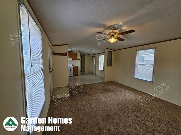 2br MANUFACTURED HOME Now Available! Unit: M-03 Apply To: County Line Community Rent: $1150/mo Beds/Baths: 2 beds 1 bath Size: 728 square feet Pets: Cat & Dog friendly, all animals must be approved. Pet deposit not required. Laundry: washer/dryer hookups Heat: Natural Gas. Included In Rent: Cold water, sewer, removal of trash/recyclables Move-In Requirements: First month's rent + sec deposit equal to one month rent, and favorable credit required (Rent: $13.00 application fee) About The Community: The County Line Community is located in a small, quiet, close-knit town. This family-friendly park is in a great school system. Just outside of Weedsport and close to Auburn with easy highway access. Syracuse is only 30 miles away. Part of the Jordan Elbridge School District. To Apply: Applications can be submitted on our website (a link will be emailed to you if you request info). The site also contains additional information and 3D tours of sample homes. There is a $13.00 application fee for a credit report, a copy of which will be mailed to you. Our application will ask for the "Property" name in a drop down menu. Please select "COUNTY LINE COMMUNITY". You can expect a response by email within 3 business days. To Speak To Someone: If you'd like to speak to someone over the phone, or have a question about the area or community, please call Pam, the County Line Community Manager. Her phone number is listed below. $13.00 credit check fee. Pets require prior approval. Rent includes cold water, sewer and removal of trash/recyclables. No smoking.