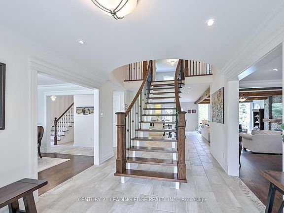 Welcome to this extraordinary country estate offering over 5,000 sq. ft. of meticulously designed living space, set on a spectacular property that combines the ultimate in privacy & tranquility. Nestled between a pristine golf course & beautiful ponds, this home truly feels like resort living, with sweeping views that bring peace from every window. Step into the heart of the home, where a custom kitchen with heated floors awaits, complete with every high-end gadget & appliance you could imagine. Whether you're hosting a family gathering or preparing a quiet meal, this kitchen has been thoughtfully designed for ease and efficiency. The living room, with its soaring 225-year-old wooden beams, offers an open and inviting atmosphere. Two staircases provide easy access to the 2nd floor, where you'll find 5 spacious bedrooms. One of the bedrooms is currently being used as a well-appointed office space - ideal for working from home. The basement is a true retreat with a large recreation room, games room & sauna - ensuring there's something for everyone to enjoy. Outside, your private oasis includes a pool and an outdoor bathroom. Pick apples from your three fruit bearing trees or enjoy the beauty of the lush perennial gardens. With its expansive yard and ideal location, this home provides the perfect balance of seclusion & convenience. Every detail has been thoughtfully crafted & renovated to offer the highest level of luxury. Whether enjoying quiet moments at home or hosting memorable gatherings, this property promises an exceptional living experience.