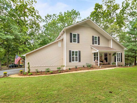 Charming updated Modern Farmhouse style home on FLAT level corner lot in desirable Lake Monticello with quick walk to beach 4. This two story four bedroom has space for the whole family. From the front porch step into the light filled great room with skylights and vaulted ceiling. Enjoy the wood burning stove or proceed to the extensive deck for outdoor living and entertaining. The open Galley kitchen is stunning with new granite countertops, flooring, upgraded appliances and bar. Two bedrooms and a full bath on the first floor allow separation of space. You will swoon over the spacious primary suite with a stunning walk-in closet on the second floor with an attached bath. Also find a versatile loft and 4th bedroom or flex space along with a true laundry room . The large paved side entrance to the garage has a workshop or extra storage. The windows have newly installed cellular shades for privacy and efficiency. Don't miss the opportunity to see this impressive home today