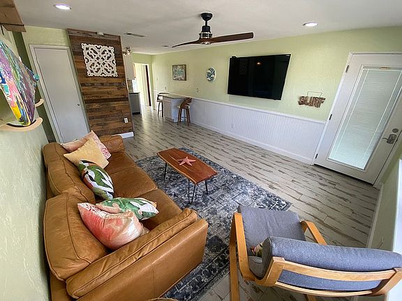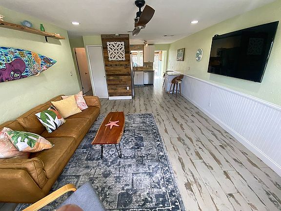 Modern, cozy beach house with all the charm! This beautiful 3 / 2 beach home is directly across from the ocean with a Beach access ramp. This charmer has all the modern touches with renovated kitchen,bathrooms, wood laminate flooring and Stainless steel appliances. The roof and AC is less than 5 years old, with plenty of storage in garage for bikes/tools/lawn equipment. Plumbing and electric is updated. New drain field put in late 2020. This home has a fenced in backyard that is great for entertaining. Backyard features a flagstone patio with fire pit, outdoor dinning area, ping pong table with plenty of room to relax in the sun. Located 3 miles north of Granada ave with plenty of places to dine or just grab a coffee. Great location, Publix is less than half a mile and located between two beach parks, 1 with playground, picnic tables, grills. Located less than half a mile is bicentennial park which has basketball courts, tennis courts, baseball field, open field for soccer or football, dog parks, playground, covered pavilion and picnic tables, hiking trail to the river. Email for any questions or request for more pictures.