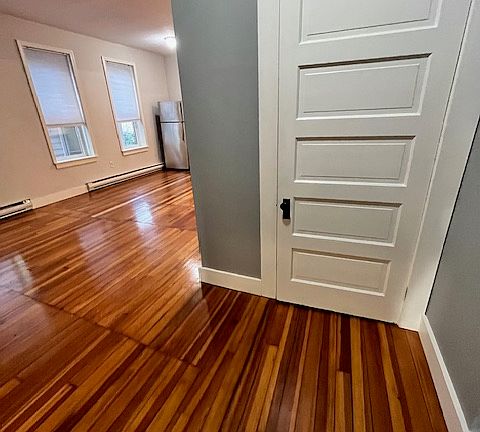 Second floor two bedroom located on corner of Bridge and Market Street. A must see! Walk into a large open living, dining and kitchen area with wood floors. Kitchen has ample cabinetry, tile back splash, double sink, stainless refrigerator, dishwasher and electric stove. Off the kitchen is a modern bathroom with bright tiled shower and cabinets for storage. Bedroom in the rear of the unit has a pull-out closet, which allows more room in bedroom. Office space off the living room with double door closet and built in shelving. Front bedroom is facing downtown Northampton with two large windows and ample closet space. Tenant responsible for electricity. Included in the rent, trash removal, recycling removal, snow removal, water and sewer. Only on street parking. No smoking and no pets. Listing ID 613