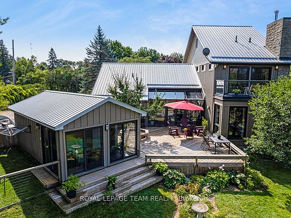 Welcome to this stunning 2016 custom-built Lockwood Brothers home, perfectly set on a beautifully landscaped lot along the banks of the Rideau River in historic Burritts Rapids. Elevated from the riverbank, the grounds are a living canvas, with carefully curated wildflower and herb gardens that evolve through the seasons. An interlock driveway leads to the attached single-car garage, with plenty of outdoor lighting enhancing both curb appeal and convenience. Inside, thoughtful architectural details maximize natural light and frame breathtaking views,seamlessly blending the outdoors with every room.Ceramic and hardwood floors run throughout (no carpet), offering a stylish and pet-friendly finish. At the heart of the home lies a truly unique feature: an endless pool,designed for year-round fitness, relaxation, and wellness. The main level includes a bright guest bedroom and full bath, along with a cozy living room featuring a wood-burning fireplace and sweeping river views. The gourmet kitchen is both tucked away and central to the home's flow, ideal for entertaining while maintaining an intimate atmosphere. Upstairs, discover three bedrooms, two of which boast private balconies that feel like personal retreats, offering peaceful escapes with views of the river and gardens. Outdoors,a private dock makes launching watercraft effortless, with excellent opportunities for canoeing and kayaking. The naturalized shoreline provides a haven for wildlife, from a variety of birds to a family of playful otters. For entertaining,the pool room opens to a spacious deck, while a sunroom tucked behind the garden/storage garage offers yet another space to unwind. Fenced-in area to keep your pets safe and secure. Bright,spacious,and intentionally designed, this home balances open-concept living with secluded nooks, creating a welcoming retreat that feels both expansive and intimate. New heat pump (2024) for economical heating and cooling, Generac whole-home generator for peace of mind.