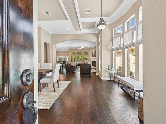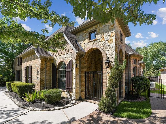 Gorgeous corner lot home in the desired front of The Woodlands boasts an open concept floor plan & luxurious indoor/outdoor living! The private gated entry opens to the light & bright formal dining, accented by bay picture windows, crown moulding, & high ceiling. The family room enjoys a cozy fireplace, & opens to the kitchen & breakfast room. Boasting amenities such as a wall mounted microwave & oven, professional gas range, & expansive island w/ breakfast bar, the kitchen is the at-home chef's ideal design for entertaining! The primary bedroom features tray ceiling, & spa-like ensuite, which includes a deep soaking tub & stunning brick accent wall. 2 addt'l bedrooms are located on the main level, & a 3rd bedroom is located on the 2nd floor, along w/ the media room- perfect for hosting guests & entertaining! Relax & enjoy the refreshing pool in the backyard, or cooking in the outdoor kitchen & expansive covered patio! The whole house generator is a great highlight to the home!
