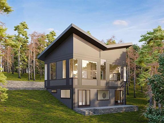 This is a Pre-construction offering. Customization of the layout and finishes is available. Existing Holly Blue available for viewing. Stonewood is collection of nine sustainable, modern homes on 1.8+ acres surrounded by 17+ HOA managed acres of forest and trails. Located on a private tree-lined road, Stonewood offers Spring Lake access via a foot path at the end of the cul-de-sac. As per HOA guidelines, the community will remain forested, private and well maintained. Neatly set on a hillside, Holly Blue is a Mid-Century modern oasis. The home is topped with a dynamic butterfly roofline offering 18.5 feet of ceiling height on the second level. With 2,250-square-feet of functional space, this 4-bedroom, 2.5-bath residence features impressive volume, utility, and character. The first level emphasizes light and entertainment. The kitchen and dining area paired with a spacious living room are all backdropped by huge windows. the living and dining area is split with a double sided fireplace. The generously sized kitchen features a massive breakfast bar, plenty of quartzite counter space, and handsome customizable cabinets from the naturals line at Mod cabinetry. The master bedroom features a walk-in closet and massive en-suit bath with a 72" free standing soaking tub and separate glass partitioned curbless shower. The guest bedrooms have ample space and one may be converted into a home office, children's playroom, gym or absorbed into the other two. Home Details include: Standing seam galvalume roofing with concealed gutter system and snow rails. Two toned James Hardie cement board siding or metal (optional). Double pane low-E Marvin designer series windows. Radiant heated power troweled concrete floors on first level or hardwood. Carlisle birch or hardwood equivalent on the upper floors. HRV (heat recovery ventilation system). Central heat and AC complimented with radiant heated floors. On demand water heater with energy efficient endless hot water. Cabinets Customizable slow close naturals line by mod cabinetry. Cafe series package with externally vented kitchen hood or equivalent