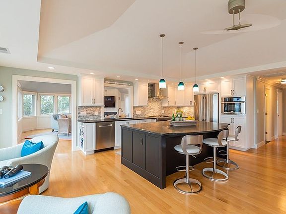 - Kit Dscrp: Main Level, Dining Area, Ceiling Fan(s), Flooring - Hardwood, Countertops - Stone/Granite/Solid, Deck - Exterior, Kitchen Island, Stainless Steel Appliances, Open Floor Plan, Recessed Lighting, Remodeled, Slider, Balcony - Exterior, Gas Stove, Lighting - Pendant, Tray Ceiling