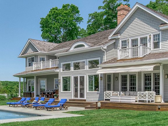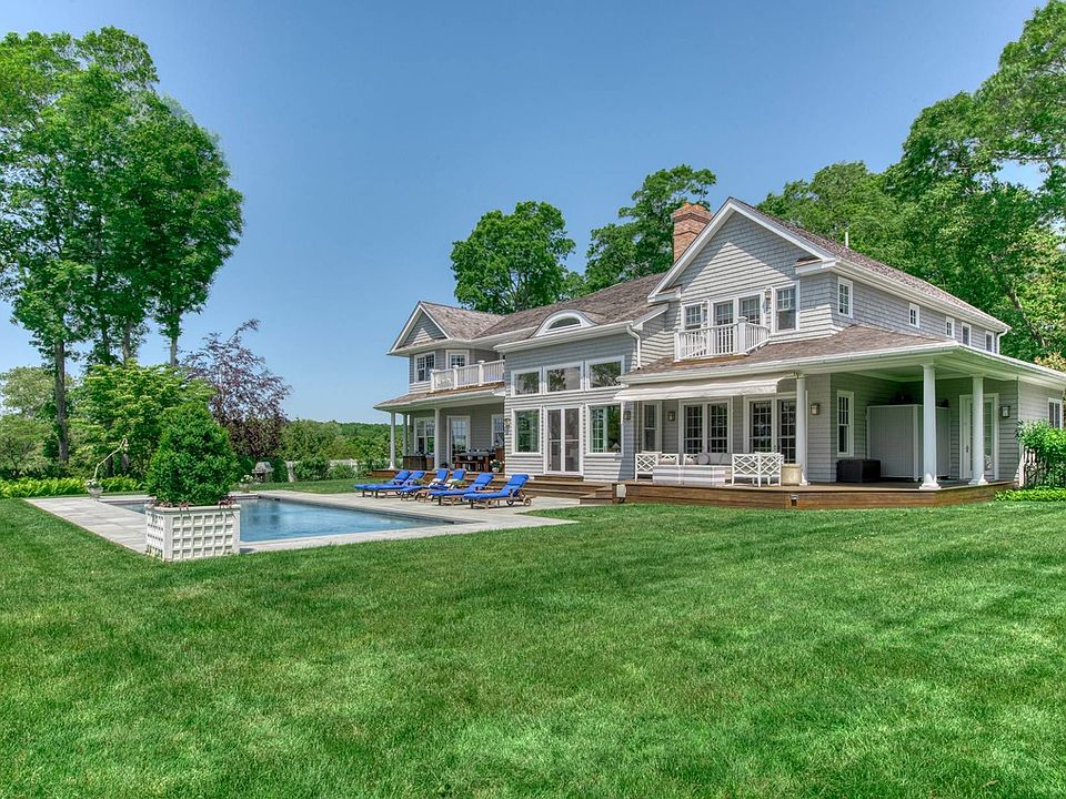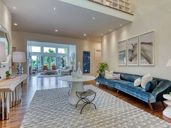 Style, quality and beauty lives here! Situated atop a hill in a prime Bridgehampton location and surrounded farm fields sits this magnificent and chic home boasting 6150 sq.ft. above ground and additional 1,300 sq.ft in the lower level totaling 7,400 sq.ft approximately of living space with 5 bedrooms and 6 bathrooms and 2 half baths. Step inside the impressive double height foyer and be taken back by the massive floor to ceiling windows! The great room, with 25 ft tall ceilings and gas fireplace, is surrounded by windows overlooking the quiet front and back yards, inundating the room with natural light and mending the indoor with the landscaping and the serenity of its surroundings. Additionally, on the 10ft first floor you will find a large formal dining room, an oversized, beautifully-renovated gourmet eat-in kitchen with custom-made cabinetry, quartzite countertops, as well as an oversized quartzite island, powder room, laundry room and a super spacious den and a master bedroom. Walk up the gorgeous staircase to find the second floor landing open to the first floor, with a bridge walkway that beautifully captures the picturesque farm views. On the second floor, the elegant master suite with a lounge seating area will surely capture your attention. On the balcony of the master suite, you will also enjoy the beautiful farm views, as well as a distant ocean view and a superb, 2 chicly-renovated master, his and her bathrooms, one with an oversized soaking tub, and bidet; the ideal place to relax. Additional and sizable guest bedrooms and a junior master bedroom with double height corner windows in each one, en-suite marble bathrooms and walk-in closets and an additional laundry room complete the second floor. On the finished lower level with 9 ft ceilings, you will find an additional bedroom with full bath, as well as an open living room and dining area, gym and a wet bar area. Outdoors, the heated gunite pool is surrounded by a beautiful backyard with a large outdoor deck providing a serene and private environment which is ideal for entertaining. Further amenities include an outdoor shower and attached 2 car garage. Abutting 30 acres of preserve land for the ultimate in privacy, some of the best hiking trails in the Hamptons and minutes to town and ocean beaches, be the first to enjoy all this sophisticated home has to offer. Hamptons lifestyle at his best!
