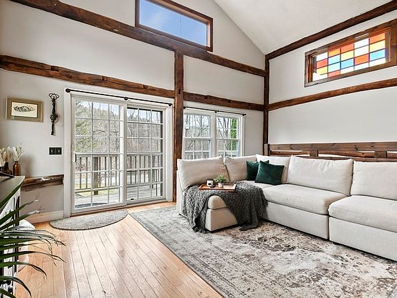 Here is your opportunity to own this one of a kind post & beam home with picturesque views of Westfield River! Fall in love with the cathedral ceilings & open floorplan! You will enter into an inviting & spacious living room offering gleaming HW floors, a stained-glass window, & glass sliders out to the deck! Envision yourself cooking in the charming, galley style kitchen with ample countertop & cabinet space, a large island, S/S appliances, and a tile backsplash! Down the hall is a good-sized bedroom, a full bath, & a spacious laundry room! The 2nd floor loft style Main Bedroom has multiple walk-in closets and plush carpet. Need more space? The partially finished lower level provides a ½ bath, workshop, and a bonus room – perfect for a home office or game room, you decided. Enjoy outdoor living on the large deck overlooking the large, level yard w/ a patio & storage shed - a perfect place for summer BBQs. Welcome Home!