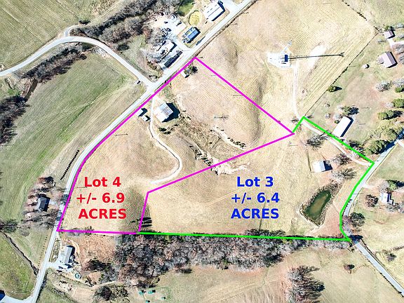 Superior acreage for your new home. This parcel has been recently surveyed and boasts 6.4 acres of unrestricted land to build on. You will fall in love with the views here which will have mountain views and water view of the pond. There is a 36 X 36 barn/shed that would be good to park an RV or your other equipment. It will be easy to cut in a driveway here as the land lays well. After construction, there will still be room for animals or whatever the need is. Lot 4, adjacent lot available as well if more acreage is desired.