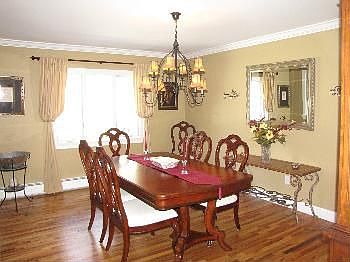 Just gorgeous! This home shows like a model! Gleaming HW floors & custom moldings throughout. Foyer with inviting columns leading into LR and expertly tiled floor. LR with picture window  flows into Formal DR, also featuring picture window and columned entry. Eat-in kitchen with granite counters, breakfast bar and sliders to deck. Family Room with brick surround fireplace and picture window. Master Bedroom offering private Master Bath w/stall shower. 3 additional Bedrooms, one of which is currently used as a Study and features a gorgeous custom home office along one wall. The fully finished Basement offers a large Recreation Room. The .68 acre, level corner lot offers an amazing backyard oasis, complete with a newer heated in-ground pool, waterfall, deck, pavered patio and beautiful landscaping.