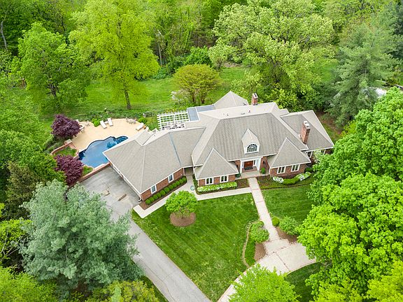 Masterfully built home in the wooded privacy of Mockingbird Place! The key features of this home include: a three car garage, updated kitchen, a first floor master with two bathrooms, a pool and tons of entertaining space for friends and family. Upon entering the spacious foyer you'll immediately notice the beautifully crafted chippendale staircase railing. To the left is the dining room complete with floor-to-ceiling windows and plenty of space for a large dining room table. To the right is a study with a wood burning fireplace and built in bookshelves. Through the foyer you'll pass the half bath and make your way into the rear living room. This room is enhanced by the presence of the sizable stone fireplace and a stunning vaulted ceiling. Just through the living room, you'll pass the wet bar to your left as you make your way into the den with sweeping views over the rear woods - privacy at its finest. The kitchen is flawlessly designed with crisp white cabinets and stainless steel appliances, beautifully partnered with slate countertops for an elegant and updated look. Additionally, a stone fireplace is located in the kitchen to enhance its warmth and character. Just off the kitchen you'll find a hallway leading to the laundry room and three car garage. The master suite completes the first floor with a large picture window, built in bookshelves, and two bathrooms and closets perfect for any couple. The second floor has two sizable rooms - one with a play room and each with their own private bath. The lower level also has two bedrooms and baths, along with a family/media room, a kitchenette and an art studio. Just pass the lower level staircase you'll find the tiled game room, an office, a wine cellar and half bath/changing room. The sliding glass doors will take you out to the the rear patio and gorgeously designed pool. This outdoor oasis is complete with a brick fireplace and beautiful wooden deck adorned with a pergola just off the den.