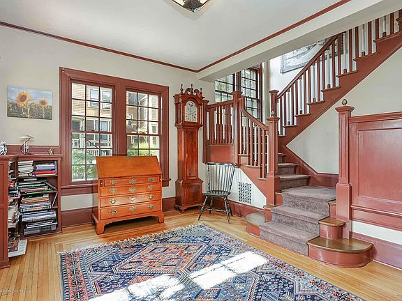 Must see this stately Historic Arts & Crafts style home, c.1909, on 1.39 acres of magnificent private grounds. This one of a kind home in the heart of downtown Freehold features original designs you would expect from this era. Formal and classic detailing fill this gracious home. Step inside to find original hardwood flooring, seamlessly transitioning through the expansive first floor. Stunning living room welcomes you with wood-burning fireplace, bay window for picturesque views of Monument Park and French doors leading into the bright and airy conservatory. Impressive dining room is appointed with attractive woodwork and built-ins, and offers direct access to the updated kitchen and butler's pantry. Enjoy the serene beauty this property has to offer from your private backyard patio.