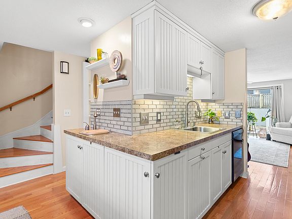 Open houses cancelled …Gorgeous 2 bedroom Townhouse with beautiful countertops in the bathrooms & kitchen, custom cabinetry, spa tub with tiled surround, second floor washer & dryer hookup, pocket doors to the bathrooms, under cabinet lights in the kitchen & under the bathroom vanity, slider to deck, and a separate storage room in the lower level!! Showings begin 1/11/2025