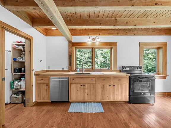 Experience sustainable living in this beautifully crafted 2-bedroom, 2-bathroom passive solar home, nestled on 12.38+/- acres of serene land. A long, winding driveway leads to this well-built post and beam residence, featuring 12-inch thick double-studded walls for exceptional insulation and energy efficiency.