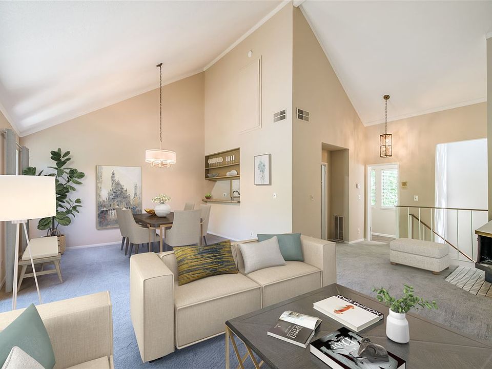 Fabulous townhouse style condo with an ideal location that's close to everything! Light and bright with spacious living & dining rooms featuring a vaulted ceiling, balcony and wood burning fireplace. Updated kitchen with granite counter tops and new stainless steel appliances. New carpet, flooring and paint, as well as recently replaced heating and cooling system. Two bedrooms, each with access to the outdoor patio and their own recently update bathrooms. Additional features include an in-unit laundry area, community pool and spa, and a covered parking space. Only minutes to downtown Pleasant Hill's shopping, restaurants and Cinema, Pleasant Hill Park and Recreational Center & public transportation. Quick and easy access 680 on ramp & Pleasant Hill BART station. This is the perfect spot to call home!