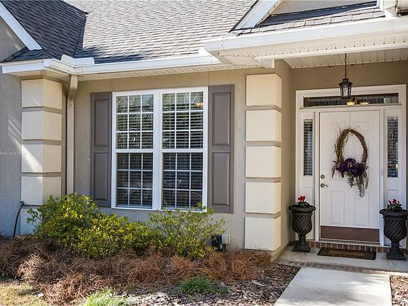 This Eagles Pointe Southerland model is oozing w/extras! Updated kitchen w/ SS & granite, light & bright throughout w/ high ceilings, Carolina room & screened porch, sweeping long golf/lagoon views, 1st floor master & bonus room w/ close proximity to the front gate for EZ in/out access. Amenities include pool, tennis, playground & pavilion w/ a unique golf course designed by Davis Love III who is currently overseeing the redesign of the Ocean Course on HHI. This popular neighborhood is convenient to everything in Bluffton & is zoned for the Okatie Elementary School. Make this home yours today!